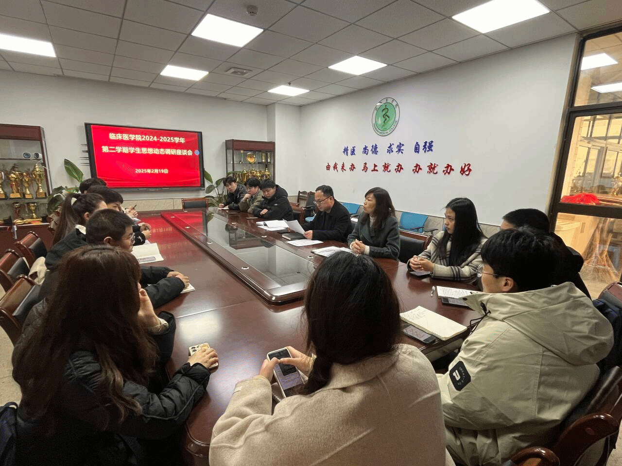 为深入了解新学期学生思想、学习、生活状况,提高教育管理工作的针对性和实效性,进一步提升思想政治教育工作水平,临床医学院通过开展学生座谈会,深入宿舍、教室、教学医院等形式全面了解学生思想动态情况。