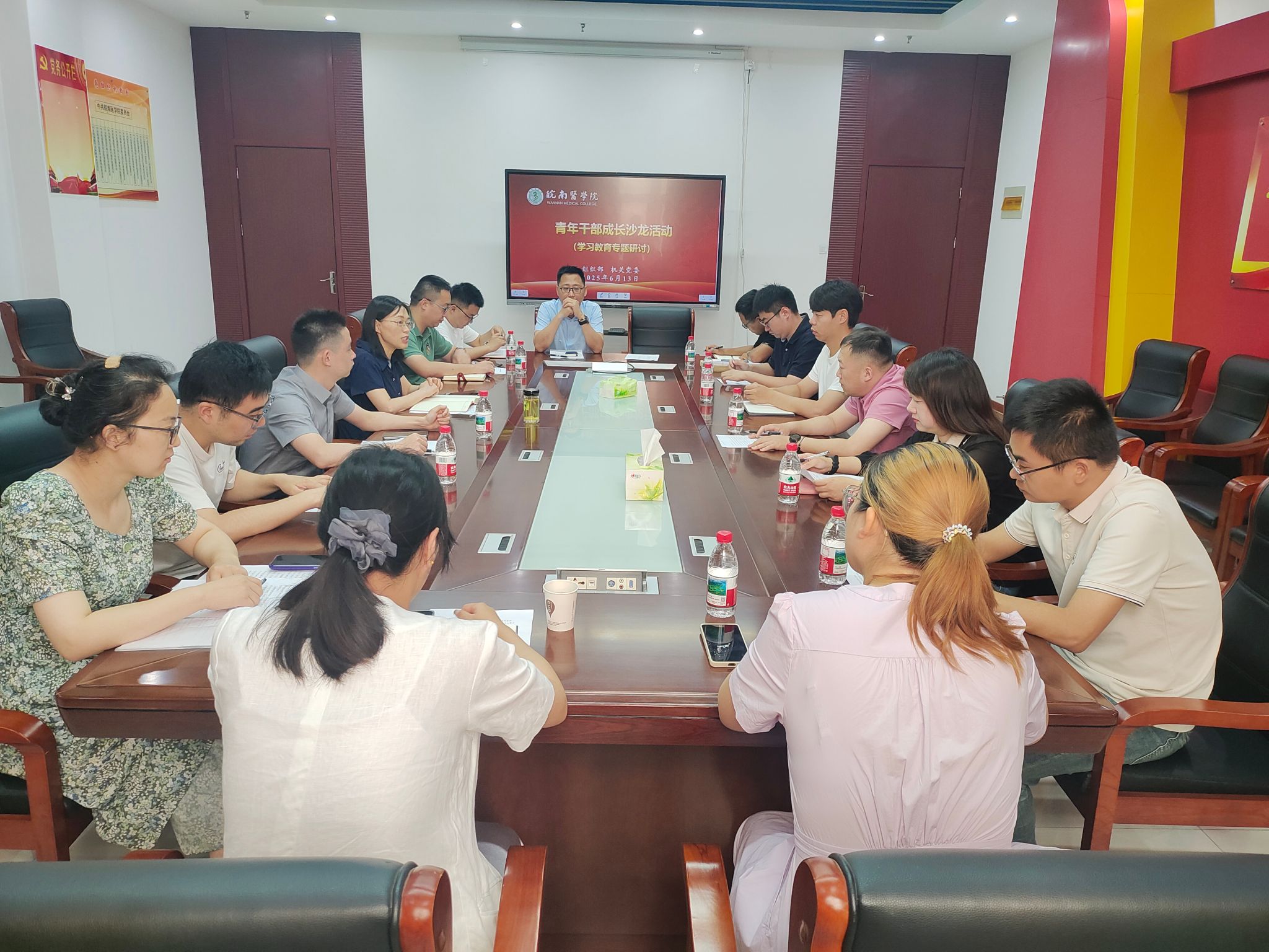 6月13日,组织部与机关党委联合举办第二青年干部成长沙龙暨深入贯彻中央八项规定精神学习教育专题研讨活动。活动由机关党委书记、组织部副部长任苔蓉主持,14名二级学院青年干部参与。
