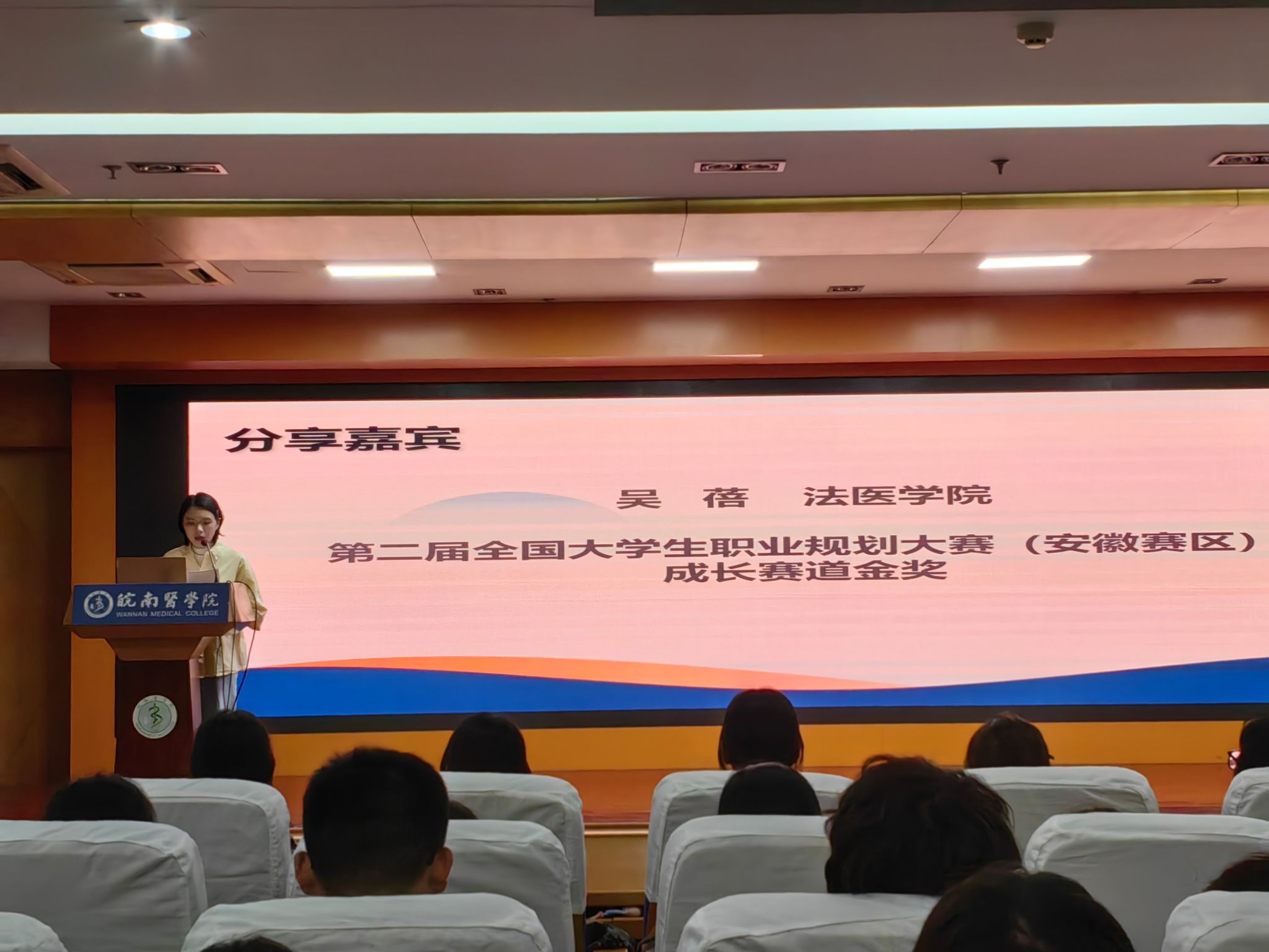 曾获第二届全国大学生职业规划大赛(安徽赛区)成长赛道金奖的法医学院吴蓓同学表示,确立职业目标仅是第一步,关键在于持之以恒的行动。她详细展示了自己为实现公安法医这一职业规划目标所制定的分阶段任务清单和执行时间表,分享了在此过程中遇到瓶颈时如何寻求老师和团队的帮助。她特别指出,真诚和自信是最好的名片,要充分展现对自身规划的热爱与信心,同时保持谦逊好学的态度,才能从容应对评委提问,赢得认可。