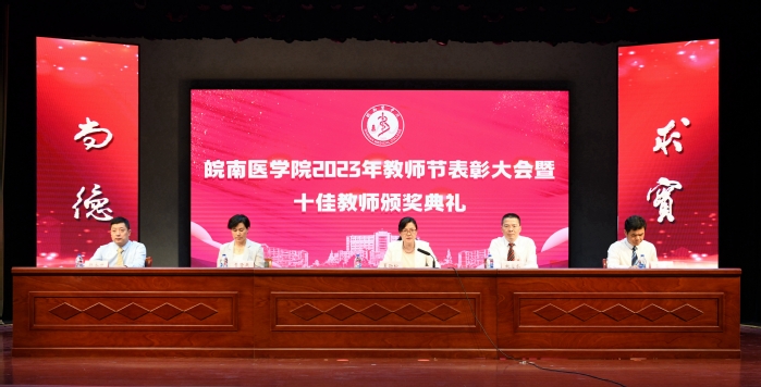 弘扬尊师重教传统,强化榜样引领感召,在全国第39个教师节来临之际,9月8日下午,我校在大学生活动中心礼堂召开第39个教师节表彰大会暨“十佳教师”颁奖典礼,对一年来取得优秀成绩教师、“十佳教师”提名人选和30年教育工作者进行表彰,并对学校首届“十佳教师”获得者进行颁奖。在校校领导夏劲松、姚应水、贾贤燕、王保中、韩永升出席表彰大会。大会由党委副书记、院长姚应水主持。