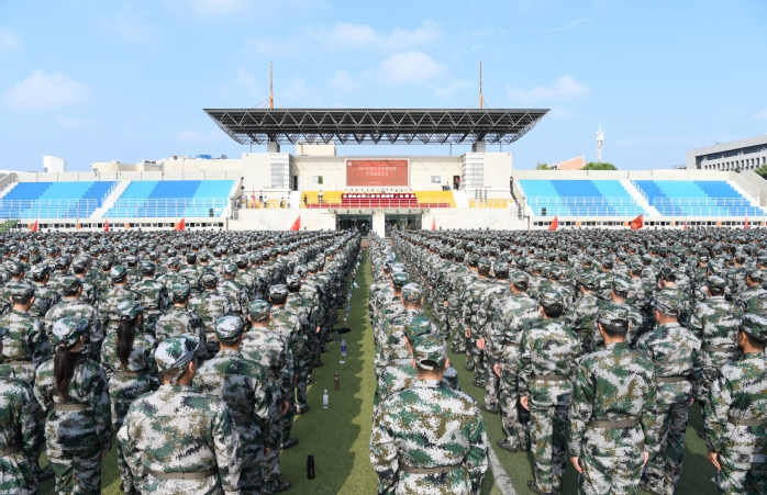 文育锋在主持讲话中指出,大学是人生的黄金阶段,同学们应不负时代、不负韶华,用心感悟“时代之问”,用行体认“大学之大”,将个人的“幸福梦”熔铸于国家的“复兴梦”,做立大志、明大德、成大才、担大任的强国青年!希望教官们在军训中严格标准、科学施训,用心用力用情做好新生军训,希望同学们在训练中不断超越自我,以汗水为墨、意志为笔,书写属于自己的青春宣言,给自己的人生交上一份圆满的军训答卷。