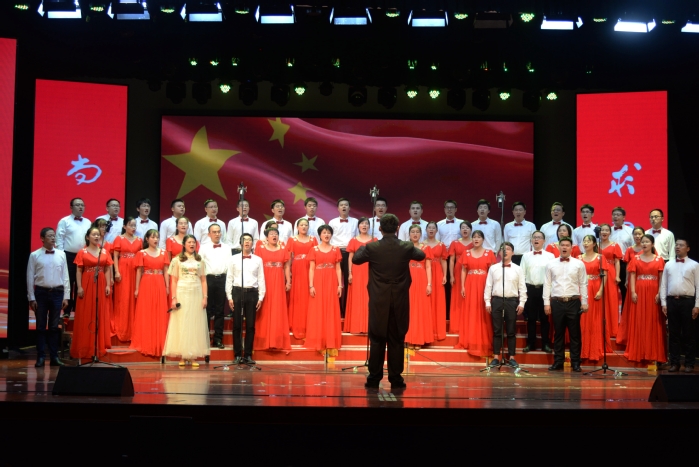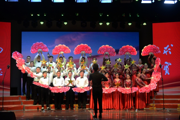 嘹亮歌声颂祖国,深情祝福庆华诞。为庆祝新中国成立70周年,充分激发爱国热情、广泛凝聚奋进力量,营造不忘初心、牢记使命、高举旗帜、砥砺前行的浓厚氛围。9月28日下午,我校在大学生活动中心举办了题为“我和我的祖国”庆祝中华人民共和国成立70周年大合唱比赛,校党委书记章尧,党委副书记、院长廖圣宝,纪委书记刘人人,副院长吴金月、郑兰荣参加比赛。比赛共分三个篇章:开天辟地篇、春天的故事篇和走进新时代篇,12个分工会轮番登台、倾情放歌,用嘹亮的歌声向祖国表达崇高的敬意,为新中国成立70周年献上诚挚的祝福。
