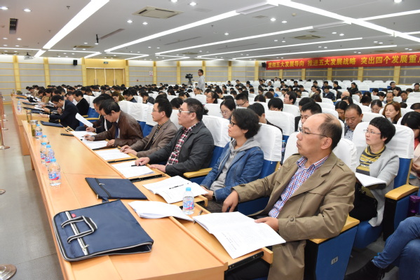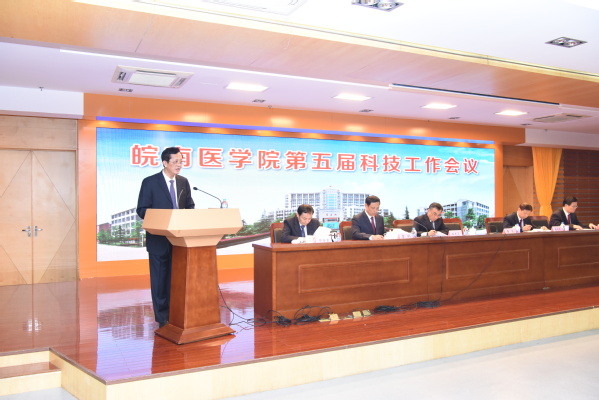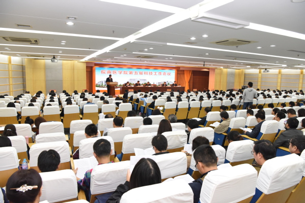 承前启后扬帆起航,继往开来共普新篇。2017年10月20日,我校第五届科技工作会议在学术报告厅隆重召开。党委书记王先俊、院长章尧、党委副书记李刚、纪委书记刘人人、副院长廖圣宝和吴金月;校党委委员方国庆、陈斌、徐朝阳;校本部处级干部、教研室主任(或主持工作副主任)、实验中心主任(或主持工作副主任)、博士、高级职称人员;直属附院院领导、科技处(科教科)负责人、正高级职称人员、博士总计300余人参加会议。李刚主持开幕式。