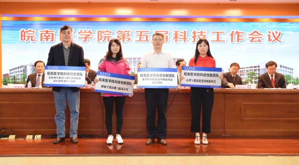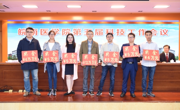 校纪委书记刘人人宣读了《关于表彰2016-2017年度国家级科学基金项目和省、市科学技术奖获得者的通知》及校第二批科技创新团队名单,校领导分别为获奖者进行了颁奖和授牌。