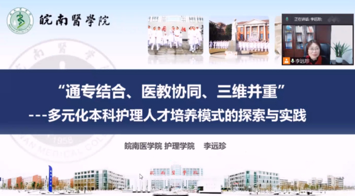 会议分为大会主题报告及护理院(校)长论坛两个环节。我校护理学院院长李远珍应邀在护理院(校)长论坛作交流发言,以“通专结合、医教协同、三维并重多元化本科护理人才培养模式的探索与实践”为题,介绍了我校围绕护理本科教育教学改革进展,从实施背景、实现途径、改革效果三个方面向全国护理教育界同仁们分享了我校护理人才培养探索实践的相关经验和做法。