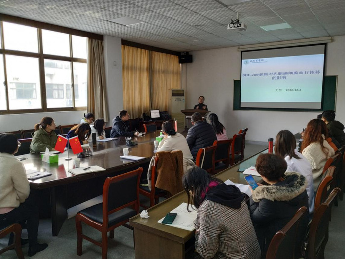 本次学术讲座分别邀请了基础医学院国家青年科学基金项目获得者——生物化学与分子生物学教研室青年博士熊磊老师和病理解剖学教研室青年博士支慧老师为大家分享自己的科研工作经历。熊磊博士以“青年女教师的科研成长之路——申请国家自然科学基金青年项目的心得体会”为题,向参加活动人员分享了自己申报国自然的经验,强调了青年教师要有“沉得住气,坐得住冷板凳,厚积薄发”的科研态度,要有不懈的努力和实践,才会有意想不到的收获。支慧博士以“BDE-209暴露对乳腺癌细胞血行转移的影响”为题,对当前研究发现BDE-209的暴露可通过诱发乳腺癌细胞产生大量富含miR-210的外泌体,促进乳腺癌细胞的血行转移的乳腺癌发病机制进行了简要阐述,为大家分享了自己当前的研究方向和部分研究成果。讲座结束后,两位博士与到场师生围绕讲座内容进行了交流和讨论。
