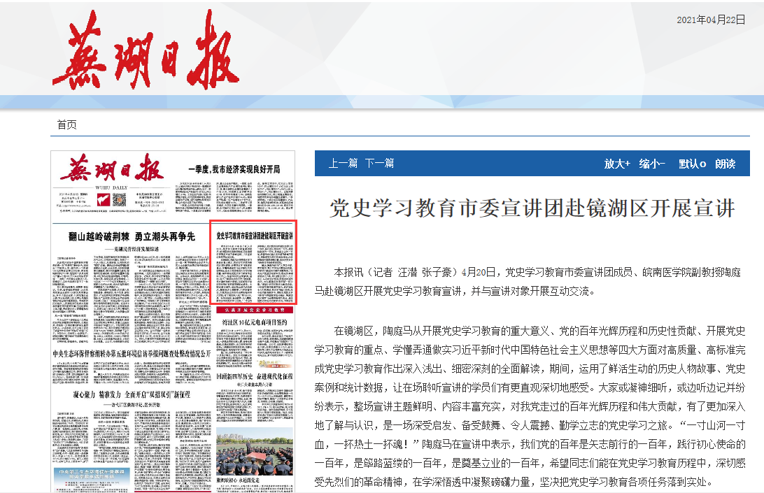 网络链接:http://epaper.wuhunews.cn/whrb/pc/content/202104/22/c201773.html