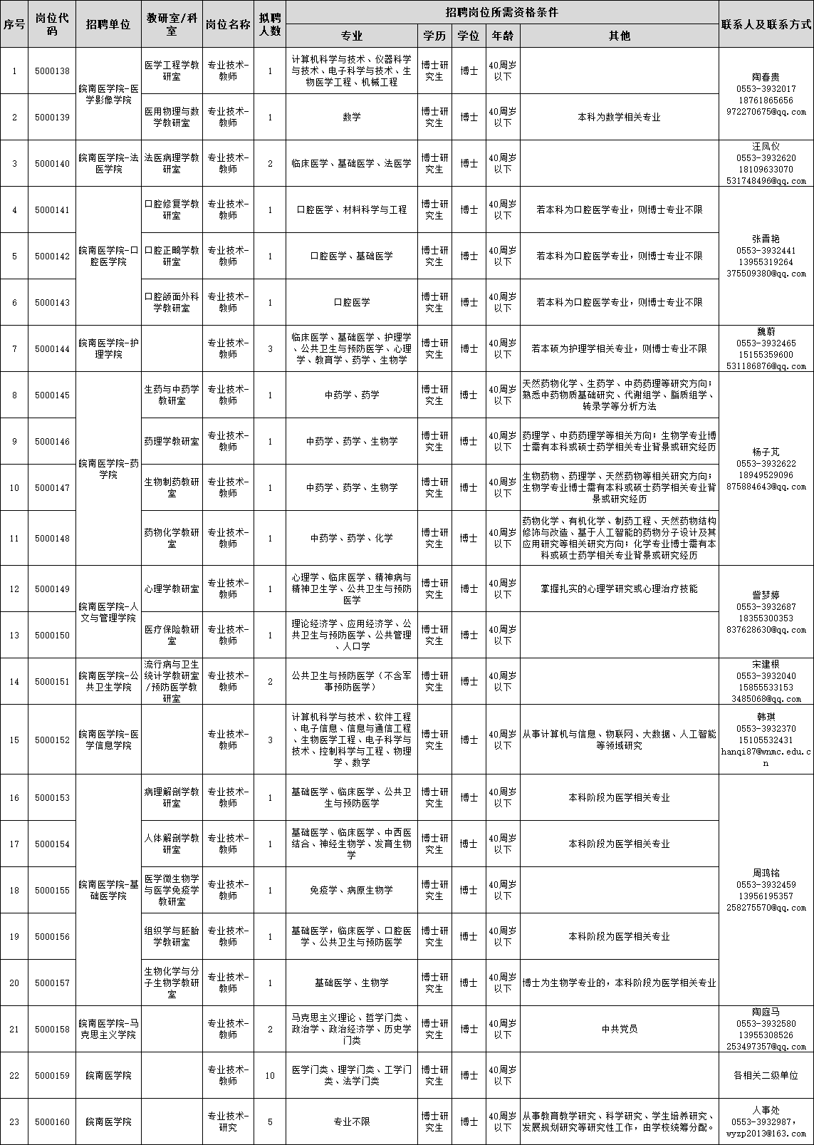 人事处联系电话:0553-3932987